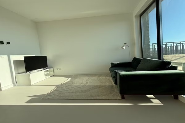 Indeling: Woonkamer: De ruime woonkamer baadt in het natuurlijke licht dankzij de grote ramen, wat zorgt voor een lichte en luchtige sfeer. De woonkamer is smaakvol ingericht met een comfortabele bank, een knus vloerkleed en een Samsung-tv om te ontspannen. De eettafel met vier stoelen biedt voldoende ruimte om te eten of te werken. Keuken: De grote nieuwe keuken in beige tinten is een echte blikvanger. Het kookeiland maakt de ruimte bijzonder praktisch om te koken. De keuken is volledig uitgerust met pannen, borden, kopjes en keukengerei – alles wat je nodig hebt om direct aan de slag te gaan. Slaapkamer: De slaapkamer beschikt over een bed van 140 cm breed, stijlvolle gordijnen voor privacy en een ruime kledingkast om je spullen in op te bergen. De grote ramen zorgen ook voor veel natuurlijk licht, wat een aangename en rustgevende omgeving creëert. Badkamer: De badkamer is voorzien van een moderne wasmachine, een mooie douchewand en een stijlvol wastafelmeubel met extra opbergruimte. Alles is ontworpen met oog voor detail en comfort. Terras: Het zonnige terras van 12 m² is de perfecte plek om te ontspannen. Het is ingericht met een loungebank, een tafel en comfortabele kussens voor extra luxe en comfort. Er is ook voldoende ruimte voor een eettafel, zodat u buiten kunt eten of ontspannen kunt genieten van een drankje. Daarnaast beschikt het gebouw over twee gedeelde terrassen waar u ook heerlijk buiten kunt zitten en genieten. Zonneschermen: Het appartement beschikt over automatische zonwering voor zowel de ramen als de deur, zodat u kunt genieten van een ideale lichtinval en tegelijkertijd beschermd bent tegen te veel zonlicht.
