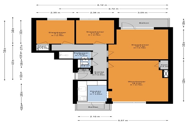 De woning is geschikt voor maximaal 3 (werkende) woningdelers (duurzaam huishouden) Indeling Gesloten portiek met bellentableau en brievenbussen. Trapopgang naar verdiepingen. In de onderbouw zijn de bergingen gelegen. Eigen entree, hal die toegang biedt tot alle vertrekken. De woonkamer is gelegen aan de voorzijde van het appartement, net als de keuken. De keuken is voorzien van een moderne keuken met onder andere een koelkast met vriesvak, oven, kookplaat en vaatwasser. De keuken biedt toegang tot het balkon aan de voorzijde. De drie slaapkamers zijn gelegen aan de achterzijde van de woning. De grote slaapkamer geeft toegang tot het tweede balkon. Op de gang is een separaat toilet. De badkamer is volledig betegeld en voorzien van een wastafelmeubel en nette douche.