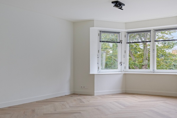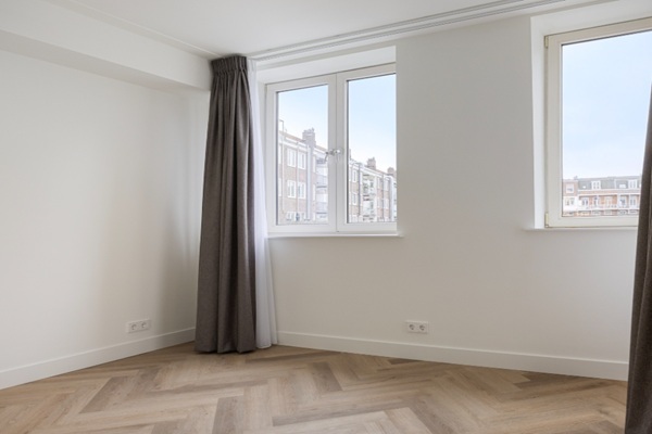 Aan de voorzijde van het appartement ligt de lichte woonkamer met grote ramen en een luxe open keuken. De keuken is volledig uitgerust met hoogwaardige inbouwapparatuur: een koel-vriescombinatie, inductiekookplaat, vaatwasser, combi-oven, afzuigkap en een Quooker voor direct kokend water. Aan de achterzijde bevinden zich de twee slaapkamers van circa 9,5 m² en 8,5 m², beide met toegang tot het balkon op het zuidwesten, waar je heerlijk kunt genieten van de middag- en avondzon.Centraal in het appartement liggen het separate toilet en de moderne badkamer, voorzien van een dubbele wastafel met meubel, handdoekradiator en een regendouche. Het gehele appartement wordt opgeleverd met een hoogwaardige PVC vloer, raambekleding en verlichting. Niet mogelijk voor studenten