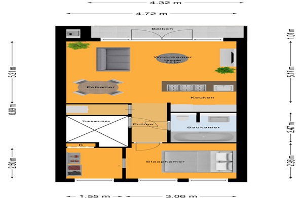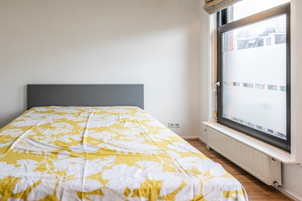 Indeling Via het gezamenlijke trappenhuis bereikt u de entree van het appartement op de derde verdieping. De lichte woonkamer met open keuken is aan de achterzijde gelegen en biedt toegang tot het balkon. De moderne keuken is voorzien van diverse inbouwapparatuur. De slaapkamer bevindt zich aan de rustige voorzijde en biedt voldoende ruimte voor een tweepersoonsbed, aangrenzend een tweede slaapkamer. De badkamer beschikt over een ligbad, wastafel en toilet. Tot slot is er een aparte berging voor de wasmachine en droger, en ook de CV-ketel is netjes weggewerkt in een geïsoleerde kast.