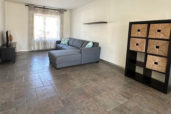 Indeling: Entree in hal met meterkast, toilet ruimte met fonteintje en trapopgang naar de bovenverdieping. Binnenkomst in woonkamer van circa 35 m² met aan de voorzijde het woon-zitgedeelte. Aan de achterzijde van de woning bevindt zich de open keuken, de keuken is voorzien van alle gemakken en beschikt over inbouw apparatuur. De keuken is v. v. vaatwasser, koelkast, dubbele spoelbak, afzuigkap, gasfornuis met oven en magnetron. De keuken geeft middels openslaande deuren toegang tot de achtertuin met betegeld terras. Entree op overloop met toegang tot twee slaapkamers, badkamer en separate wasruimte. De ouderslaapkamer van circa 14 m² is gelegen aan de achterzijde van de woning. Aan de voorzijde van de woning bevindt zicht een tweede slaapkamer van ca.10 m². Volledig betegelde badkamer voorzien van ligbad met douche- en whirlpoolfunctie. Verder is er een wastafel en wasmachine aanwezig in de badkamer. Separate wasruimte van circa 5 m² voorzien van droogmachine. De gehele begane grond is voorzien van tegelvloer. De bovenverdieping is voorzien een donkere laminaatvloer. De achtertuin beschikt over een betegeld terras, gazon en borders met beplanting. Tevens is er een stenen berging aanwezig en is de tuin ook te bereiken via een eigen achterom.