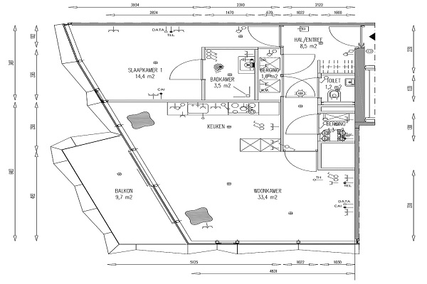 Het appartement heeft een woonkamer met open keuken. Vanuit de woonkamer is het ruime balkon bereikbaar. De keuken is voorzien van een inductiekookplaat met afzuigkap, vaatwasser, koelkast en een combi-magnetron. De badkamer heeft een inloopdouche en een wastafel. Er is een separaat toilet. De slaapkamer is 14 m2. In de inpandige berging vind je de aansluiting voor de wasmachine en de WKO-installatie. Het appartement beschikt daarnaast over een eigen parkeerplaats in de parkeergarage en een privéberging in de kelder. Het complex is voorzien van een lift.