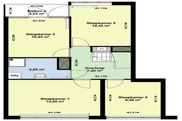 INDELING: Via het gemeenschappelijk trappenhuis naar de vierde verdieping: entree, woonkamer met een open keuken en een balkon gelegen op het zuiden, interne trap naar de vijfde verdieping. Vijfde verdieping: overloop, twee slaapkamers aan de voorzijde, de badkamer is voorzien van een douche en een wastafel, twee slaapkamers aan de achterzijde met toegang tot het balkon. Berging gelegen in de onderbouw. Geen verhuur aan studenten!; De woning mag door maximaal 2 VOLWASSENEN bewoond worden (kinderen zijn welkom);