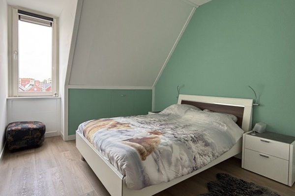 Ruime hal/entree en separaat toilet met fonteintje. Doorloop naar de ruime woonkamer met een fraaie raampartij aan de achterzijde wat zorgt voor veel natuurlijk licht. De moderne open keuken is opgesteld in een hoek en uitgerust met inbouwapparatuur, te weten 4-pits inductiekookplaat, afzuigkap, koelkast, en een vaatwasser. De trap in de hal geeft toegang tot de bovenverdieping. Verdieping: Overloop, twee slaapkamers en een luxe badkamer. De overloop beschikt over een dakraam. De slaapkamers zijn beide is voorzien van een deur voor veel frisse lucht. De badkamer is uitgerust met een inloopdouche, zwevend toilet en een wastafelmeubel. Daarnaast is dit appartement voorzien van een ruime berging en parkeerplaats. Dit is een zeer ruime en luxe huurwoning!