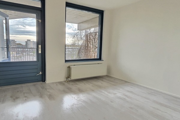 I N D E L I N G De entreehal biedt direct toegang tot vrijwel alle vertrekken van het appartement. Aan de linkerzijde bevindt zich de eerste slaapkamer. De ruimte is ideaal als hoofdslaapkamer of rustige werkplek. Vervolgens tref je aan de rechterzijde het separate toilet, keurig betegeld en uitgerust met een fonteintje. Iets verder in de hal bevindt zich de badkamer met een nette inloopdouche, glazen douchewand, wastafel en aansluiting voor een wasmachine. De afwerking met witte wandtegels en bruin vloerwerk geeft een frisse en functionele uitstraling. De hal leidt je verder naar de tweede slaapkamer. Aan het einde van de hal bevindt zich de ruime en lichte woonkamer. Deze is dankzij de grote raampartijen en hoekligging bijzonder goed verlicht. Vanuit de woonkamer is er directe toegang tot het balkon, welke uitzicht geeft over het Sierplein. De keuken is apart gesitueerd en eenvoudig ingericht, met een recht keukenblok, afzuiger, werkblad, spoelbak en bovenkastjes. Ook vanuit de keuken is er zicht naar buiten, wat zorgt voor een prettige werksfeer. In de inpandige bergkast tref je de mechanische ventilatie en cv-ketel, alsmede extra opslagruimte. Het appartement beschikt tevens over een eigen berging in de onderbouw.