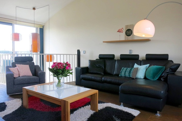 Indeling: centrale beveiligde entree in modern appartementencomplex ‘Torenhof’, lift naar 5e verdieping, entree appartement, hal met toilet, eet- en woongedeelte met moderne open keuken inclusief alle apparatuur (SMEG fornuis/oven), trap naar 6e/bovenste verdieping, ruim en licht woongedeelte met toegang tot zonnig en ruim terras op het zuidwesten, trap (naar beneden) naar de 4e verdieping/benedenverdieping, grote hoofdslaapkamer (6x4 m2), tweede ruime slaapkamer en derde kleinere maar nog steeds goed formaat slaapkamer, badkamer met ligbad/douche, wastafel en toilet, tweede gloednieuwe badkamer met douche en wastafel.