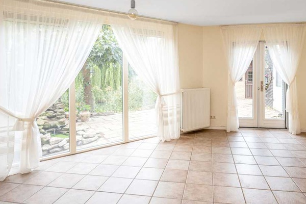 Indeling Entree/hal met grote raampartij tot aan de grond, meterkast, open trap en toilet voorzien van luxe tegelwerk tot aan plafond. Tevens toegang tot ruime berging voorzien van plavuizenvloer, wasmachineaansluiting, wasbak en toegangsdeur tot tuin. Vanuit de hal is de riante woonkamer bereikbaar voorzien van een zeer ruim eetgedeelte, grote inbouwkeuken welke beschikt over de volgende inbouwapparatuur; koelkast, vriezer, inductie kookplaat, spoelbak, vaatwasser, graniet werkblad, schouw, pannenlade en combimagnetron. Tevens is er veel kastruimte aanwezig. De woonkamer is voorzien van een plavuizenvloer met vloerverwarming, grote raampartij, openslaande deuren naar de zeer verzorgde tuin. Riante overloop met toegang tot drie ruime slaapkamers. De badkamer is voorzien van een wastafelmeubel met dubbele wastafel, ligbad, kunststof Whirlpool en thermostaatkranen, hangend toilet en een luxe stoom/douchecabine. Een grote bergkast onder de trap is ook op deze verdieping aanwezig. Grote zolderkamer met hoge nok, wanden voorzien van spachtelputz, verwarming, wastafel, grote ramen en deur met toegang tot riant dakterras. Gehele verdieping voorzien van vloerbedekking. De nette aangelegde tuin met sierbestrating is deels voorzien van beplanting, tuinverlichting en er is een tuinhuisje aanwezig.