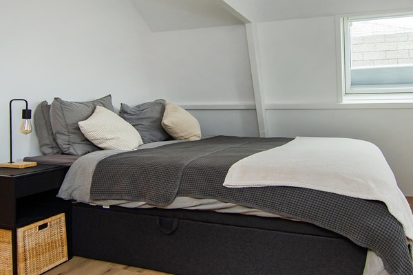 Indeling: Begane grond: entree met meterkast, trapopgang … 1e verdieping: overloop, toiletruimte met zwevend toilet en fontein, lichte woonkamer met grote raampartijen en balkon op het zuiden, vloerverwarming, halfopen keuken met inbouwapparatuur en ruime bergkast. De keuken is voorzien van combi-magnetron, vaatwasser, koel-vriescombinatie, inductiekookplaat met afzuigkap. Trap naar … 2e verdieping: overloop, cv-ketel en waskast met aansluitingen voor wasmachine en droger, slaapkamer voorzijde met dakkapel en twee Velux dakramen, slaapkamer achterzijde met dakkapel en Velux dakraam, moderne badkamer met douchecabine, wastafelmeubel met spiegel, zwevend toilet en handdoekradiator.