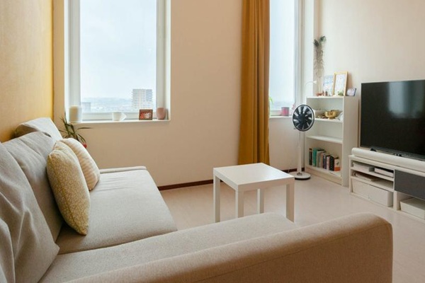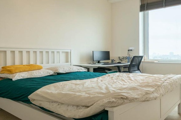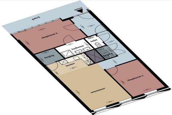 De gezamenlijke entree op de begane grond geeft middels twee liften toegang tot de verdieping waar toegang is tot de woning zelf. Deze komt uit in de gang waarvandaan alle ruimtes, waaronder een separaat toilet, te bereiken zijn. De woonkamer is, net als de twee slaapkamers, met bijzonder hoge plafonds, veel ramen en moderne keuken met vaatwasmachine, combi magnetronoven en koel- inbouwvriezer. Ook is er een keramische kookplaat en RVS afzuigkap. Tevens is er een ruime berging is bereikbaar vanuit de keuken. In de woning zelf is een technische ruimte met aansluiting voor was- en/of droogmachine. De badkamer is netjes en voorziet in een separate douche cabine en dubbele wastafel met spiegels. De woning wordt kaal verhuurd en is bijzonder gunstig gelegen met openbaar vervoer als bus en tram op loopafstand alsmede alle winkels voor de dagelijkse boodschappen.