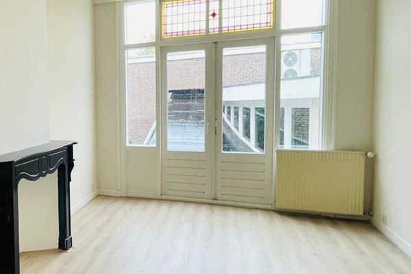 Indeling: Gezamenlijke entree. Trap naar de eerste verdieping. Entree, ruime hal, toegang naar de ruime woonkamer met kamer-en-suite en vele originele details waaronder glas in lood ramen. Aan de achterzijde openslaande deuren naar het dakterras welke over de breedte van het huis is gelegen. De keuken is aan de achterzijde gelegen en voorzien van koelkast, vriezer, vaatwasser, oven, kookplaat en afzuigkap. Een tussenruimte welke ingericht kan worden als kantoor of walk in closet brengt je naar de ruime slaapkamer aan de voorzijde. Welke ook is voorzien van glas in lood ramen en kamer en suite deuren. - Voorkeur voor een werkende alleenstaande of een stel -Niet geschikt voor woningdelers.