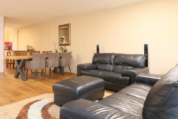 Indeling. Binnenkomst in de hal welke toegang biedt tot het separaat toilet, de trapopgang naar de eerste verdieping en de ruime woonkamer met open keuken. De keuken beschikt over alle gewenste inbouwappartuur. In de woonkamer is een grote schuifpui welke toegang geeft tot de zonnige tuin met berging. De hal geeft toegang aan 3 slaapkamer, waarvan 2 zeer ruime, en de badkamer met ligbad, douche en toilet. Hier bevinden zich nog 2 slaapkamers en een badkamer met douche.