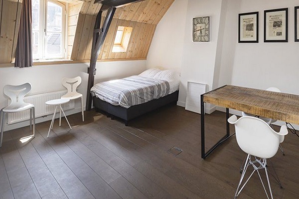 NIET GESCHIKT OM TE DELEN Indeling: 2e verdieping: Entree, een zeer lichte en comfortabele woon- en eetkamer met een volledig uitgeruste keuken. De hoofdslaapkamer heeft veel ruimte en grote kasten. De moderne badkamer heeft een bad en douche. 3e verdieping: Op deze verdieping bevindt zich de 2e slaapkamer met een kleine keuken en een apart toilet. Deze kamer kan gebruikt worden als logeerkamer, maar kan ook prima dienen als kantoor of studeerkamer. Een zeer privé appartement omdat er slechts één ander appartement is om het gebouw mee te delen, op een geweldige locatie. Geen studenten