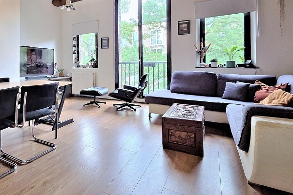 NIET GESCHIKT VOOR DELERS Indeling Centrale entree met trappenhuis naar de tweede verdieping. Tweede verdieping: entree van de woning, hal, gesloten keuken voorzien van diverse inbouwapparatuur, royale woonkamer met hoge plafonds en veel lichtinval, eerste slaapkamer aan de achterzijde en een separaat toilet. Derde verdieping: twee ruime slaapkamers en een praktische badkamer met inloopdouche, wastafel en tweede toilet. Tevens bevindt zich hier een was-droogcombinatie.