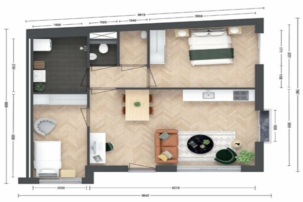 Indeling: Bij binnenkomst stapt u meteen binnen in de gezellige woonkamer met open keuken. De keuken is voorzien van kookplaat met afzuigkap en een ingebouwde vaatwasser. Via de woonkamer is ook de eerste slaapkamer te bereiken. Vervolgens komt u uit in de hal waarnaar u naar de tweede slaapkamer kunt, het apart toilet, de bergruimte en de badkamer. De badkamer is uitgerust met een wastafel, spiegel en planchet, inloopdouche en designradiator.
