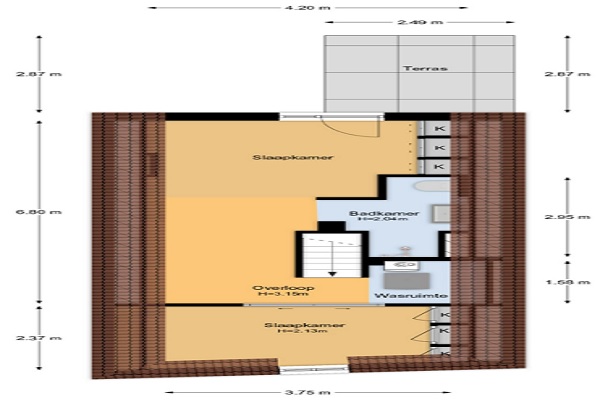 Indeling Parterre: entree, trapopgang. 1e verdieping: overloop, apart toilet, ruime en zonnige woonkamer met grote ramen en een sfeervolle haard. Via een opgang bereik je de moderne keuken, voorzien van vaatwasser, oven, 4-pits gasfornuis, afzuigkap en een losse koel-/vriescombinatie. 2e verdieping: open ruimte, slaapkamer aan de voorzijde, badkamer met dubbele wastafel, toilet en inloopdouche, aansluiting voor wasmachine en CV-installatie. Ouderslaapkamer aan de achterzijde. De verdieping is voorzien van meerdere dakramen.
