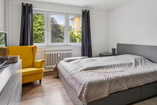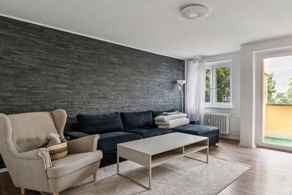 Balkon op het zuiden met uitzicht op groen Praktische indeling, geschikt voor gezamenlijk wonen. Slechts enkele minuten van parken – ideaal voor buitenactiviteiten. Dit 2-kamerappartement, circa 55 m2 woonoppervlak, voorzien van alles wat je nodig hebt voor comfortabel wonen – of je nu alleen woont, met z’n tweeën of als gedeelde flat. De lichte slaapkamer is voorzien van een groot tweepersoonsbed, terwijl de woonkamer u uitnodigt om te ontspannen met een comfortabele bank, tv en toegang tot het zonnige balkon op het zuiden. De keuken is volledig uitgerust – inclusief een vaatwasser en zitplaatsen. Het appartement is gelegen op de tweede verdieping van een goed onderhouden appartementencomplex in een rustige maar toch zeer goed bereikbare wijk.