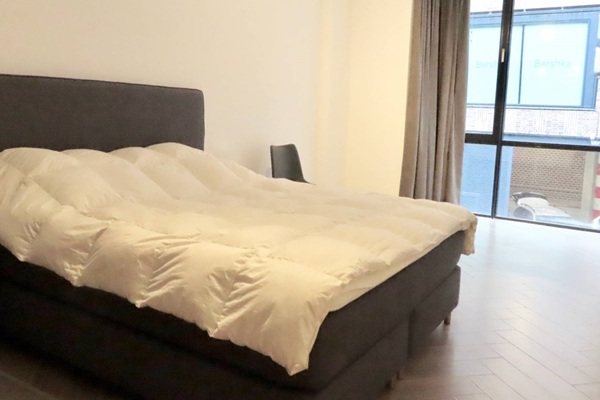 Indeling Gezamenlijke entree op begane grond met lift naar de eerste verdieping. Entree appartement naar hal met toilet en deuren naar alle vertrekken. Ruime woonkamer, volledig ingericht in een moderne stijl. Open keuken met vaatwasser, oven/magnetron, 4 pits gasfornuis en vriezer/koelkast. Opbergruimte met planken. Ruime hoofdslaapkamer met tweepersoonsbed en kast. 2e slaapkamer met bureau. Badkamer met inloopdouche, wastafel, handdoekradiator en wasmachine/droger. Apart toilet. Er is vloerverwarming in het gehele appartement. Dubbel glas. Woningdelen mogelijk tussen twee young professionals