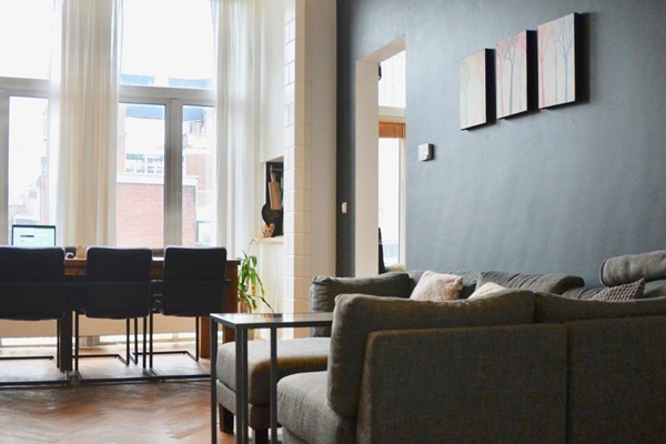 Indeling Trap naar de eerste verdieping. Entree in lichte en warme woonkamer met open haard, ingebouwde kasten, mooie houten 8-persoons eettafel en comfortabele L-bank. Keukenraam naar de woonkamer. Moderne designkeuken met witte, elegante kasten en voldoende opbergruimte, gecombineerd met een houten aanrechtblad en SMEG koelkast. Inbouwapparatuur waaronder een kookplaat, oven en vaatwasser. Schuifdeuren naar de ruime slaapkamer met ensuite badkamer. Grote kledingkasten en ingebouwde kastruimte, bureau en hoogwaardig bed. Uniek en gezellig hoekje met grote ramen. Luxe badkamer voorzien van separaat ligbad en inloopregendouche, handdoekradiator, wastafel met opberglades. Houten visgraatvloer, volledig voorzien van dubbel glas en centrale verwarming.