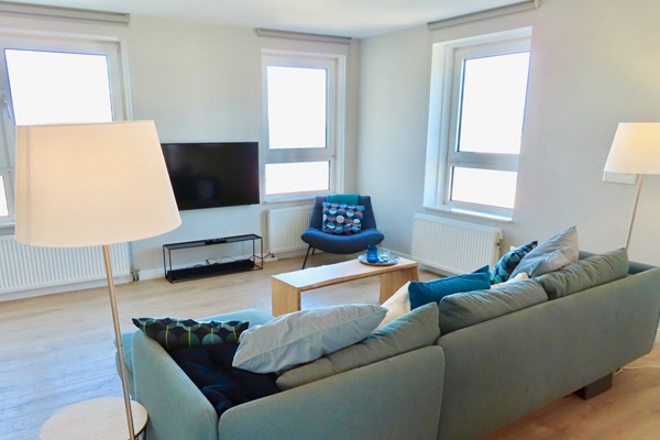 Ingang vanaf de deur met elektronische deurbel en camerasysteem. Lift naar de 4e verdieping. Ingang van het appartement leidt naar een lange gang met deuren naar alle kamers. Zonnige en lichte woonkamer met veel ramen met uitzicht op het strand en de zee. Modern designmeubilair en afwerking, smart TV en Sonos-geluidssysteem. Glazen deuren naar de ruime keuken met inbouwapparatuur zoals ingebouwde oven en magnetron, 5-pits gasfornuis, vaatwasser, state of the art koelkast / vriezer. Gebruiksvoorwerpen en bestek, evenals keukenapparatuur. Twee ruime slaapkamers met comfortabele tweepersoonsbedden en kasten. Een van deze slaapkamers heeft ook een smart-tv. Derde slaapkamer, met uitschuifbaar bed, dat kan worden gebruikt als studeer- / ontspanningsruimte of logeerkamer met smart-tv en toegang tot het balkon. Twee badkamers met douche en wastafel, spiegel, kasten en handdoekradiator. De 2e badkamer heeft een toilet. Nog een apart toilet. Een wasruimte met droger, wasmachine en planken voor reinigingsapparatuur. Videobellen, hoogwaardige laminaatvloer en dubbele beglazing. Het appartement is centraal verwarmd en voorzien van draadloos internet.