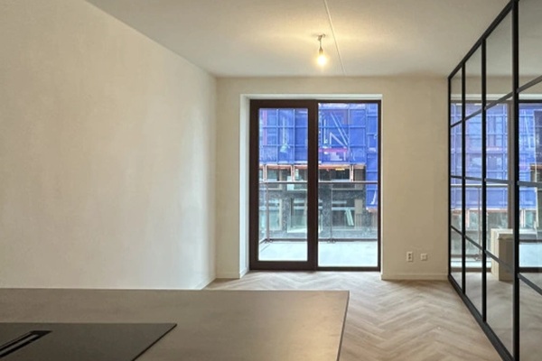 Indeling: Entree via de gezamenlijke hal met lift, brievenbussen en bellentableau. Binnenkomst in de in een ruime hal die toegang geeft tot de meterkast, een praktische bergruimte en de lichte woonkamer. De woonkamer is ruim opgezet en wordt voorzien van een moderne open keuken. Aan de rechterzijde wordt een glazen afscheiding geplaatst, waardoor een stijlvol slaapgedeelte ontstaat. Zowel vanuit de woonkamer als vanuit de slaapkamer is er toegang tot het balkon, waar u kunt genieten van het prachtige uitzicht. De badkamer is bereikbaar vanuit de woonkamer en uitgerust met een inloopdouche, ruime wastafel met spiegel en een hangend toilet. Op de 7e verdieping is er een fraaie gezamenlijke daktuin met diverse zitplekken en een panoramisch uitzicht over Rotterdam en op de begane grond bevindt zich een gezamenlijke fietsenberging.