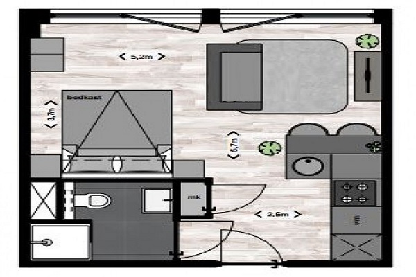 De entree van het complex Randhoeve Houten ligt aan de Randhoeve in het centrum van Houten, direct naast het NS station (10 treinminuten van Utrecht Centraal). Bij binnenkomst zie je natuurlijk de traditionele postkasten maar ook de Bringme Box. Met de Bringme Box kun je je online bestelde pakje gewoon laten thuisbezorgen zonder dat je thuis bent! Het complex is bereikbaar via een deur voorzien van een video-intercom: zo kun je zien wie er voor de deur staat. Woon je op één van de verdiepingen kies dan in de hal tussen de lift of gezond omhooglopen via de trap. Je huurt de studio volledig gestoffeerd. Er ligt al een PVC-vloer, de wanden zijn voorzien van scan behang, er zijn twee gordijnrails aangebracht waarvan één al is voorzien van in-between gordijnen en je hoeft geen lampen op te hangen want in de plafonds is al LED verlichting aangebracht. Er is zelfs gedacht aan schilderijrails zodat je niet zelf gaten hoeft te gaan boren. Als je binnenkomt heb je een nette L-vormige hoogglans keuken met koel-vriescombinatie, keramische kookplaat, combimagnetron, vaatwasser (45cm) en afzuigkap. Onder het aanrechtblad is ook een aansluiting en afvoer voor een wasmachine gemaakt. Aan de korte kant van de keuken kun je zitten. Zo woon je super effectief in deze studio. De badkamer is voorzien van zwevend toilet, douche met douchegarnituur en douchescherm. Alle appartementen zijn voorzien van een airconditioningssysteem waarmee je op energiezuinige wijze je woonruimte kunt verwarmen, koelen en ventileren.