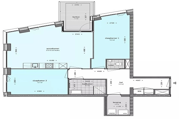 Indeling De royale leefkeuken wordt volledig opgeleverd met hoogwaardige inbouwapparatuur, waaronder een inductiekookplaat met afzuigkap, een combimagnetron, een vaatwasser en een koel-vriescombinatie. Of je nu een snelle maaltijd bereidt of uitgebreid dineert, hier kook je elke dag de sterren van de hemel. Het appartement beschikt over een sfeervolle woonkamer met grote ramen die zorgen voor veel natuurlijk licht en een prachtig uitzicht over de stad. De twee slaapkamers zijn ruim en comfortabel, ideaal om te ontspannen of als werk- of hobbyruimte in te richten. De badkamer is modern en stijlvol afgewerkt, voorzien van een wastafel met spiegel en een ruime inloopdouche. Daarnaast is er een separaat toilet, wat extra gemak en comfort biedt. Met de combinatie van luxe, comfort en een toplocatie in het hart van Den Haag, biedt dit appartement een unieke woonervaring voor wie van stedelijk wonen houdt zonder in te leveren op kwaliteit en stijl.