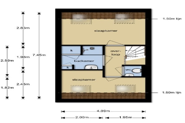 Indeling Begane grond: entree, ruime hal met apart toilet, lichte woonkamer (met vloerverwarming) met open leefkeuken voorzien van alle gemakken. Eerste en tweede verdieping: in totaal vier slaapkamers en twee moderne badkamers. Op beide verdiepingen bevindt zich een apart toilet, wat het comfort voor een gezin aanzienlijk vergroot. Maximaal aantal personen: zeer geschikt voor een gezin, niet geschikt voor woningdelers