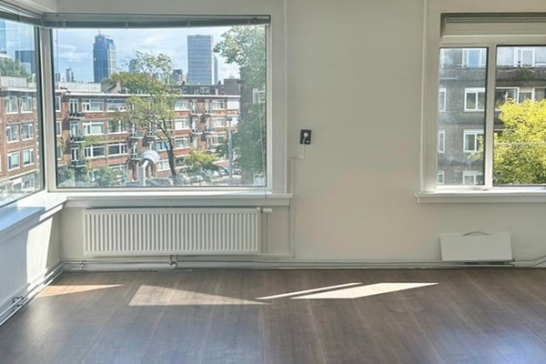Indeling 3e verdieping: Overloop met meterkast en toilet. De woonkamer is erg licht met veel glas door hoekligging aan de voorzijde. De 1e slaapkamer bevind zich op de 3e etage naast de woonkamer. De keuken is voorzien van een koelkast, vriezer, 4pits gaskookplaat, hete-lucht oven, vaatwasser en afzuigkap.De hele verdieping is voorzien van een fraaie laminaar vloer. Via een vaste trap is er toegang tot de 4e verdieping: Op de 4e verdieping bevind zich de 3e slaapkamer en de ruime waskamer voorzien was wasmachine en droger. Het appartement is geschikt voor 3 buitenlandse studenten