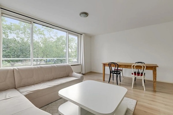 Indeling: Het appartement is gelegen op de eerste verdieping. Aan de voorzijde is de lichte woonkamer met veel ramen die volledig geopend kunnen worden (dubbel glas). De keuken aan de achterzijde is voorzien van een Siemens 4-pitsgasfornuis, oven, afzuiging en veel kastruimte. Een diepe bergkast en daarnaast is het toilet met fontein separaat in de hal. De fijne slaapkamer aan de achterzijde heeft toegang tot het riante balkon. Aangrenzend de moderne badkamer, deze is uitgerust met een inloopdouche, wastafel + meubel en designradiator. Beneden is nog een aparte berging.