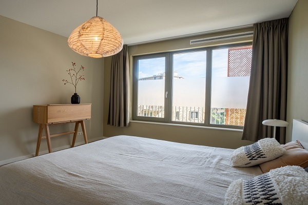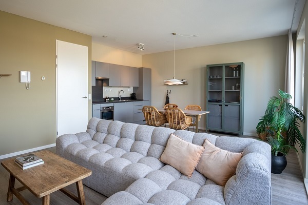 Hoogwaardig, volledig gemeubileerd appartement met twee slaapkamers van circa 100m2 met een balkon op het zuiden met uitzicht op het water. Het appartement is trendy met het nieuwste ontwerp en beschikt over luxe meubels en een complete inventaris van huishoudelijke apparatuur. Je voelt je meteen thuis. De ruime en brede woonkamer is het middelpunt van het appartement met een comfortabele grote bank, stoelen, dressoirkasten en een royale tv. Het appartement ademt vooral de ruimte in met zijn vrijstaande eethoek met 6 persoons eettafel, perfect als u thuis moet werken. De open keuken is voorzien van inbouwapparatuur waaronder een hoogwaardige vaatwasser, oven en koelkast met vriezer. Alle standaard huishoudtoestellen zijn inbegrepen zoals waterkoker, etc. De hoofdslaapkamer is voorzien van een kingsize bed en royale kastruimte. De tweede slaapkamer heeft een tweepersoonsbed en een bureau. Het appartement wordt aangevuld met een luxe badkamer voorzien van een ligbad, inloopdouche en dubbele wastafels. Het appartement geeft u de luxe van een in huiselijke sfeer.