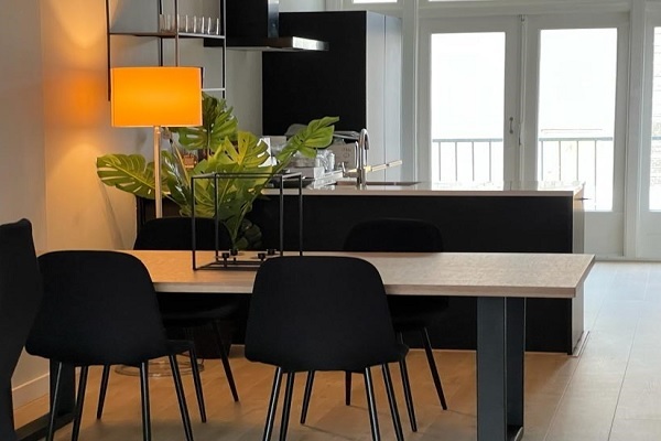 Indeling Trap naar de eerste verdieping. Ruime en lichte woonkamer. Open designkeuken met inbouwapparatuur zoals vaatwasser, koel-/vriescombinatie, inductiekookplaat, oven en voldoende opbergruimte. Twee ruime slaapkamers. Luxe badkamer met inloopdouche, wastafel met lades, spiegel en handdoekradiator. Apart toilet met fonteintje. Zonnig balkon. Het appartement is volledig gerenoveerd met aandacht voor design en comfort, voorzien van een houten vloer, dubbele beglazing en gloednieuw meubilair.