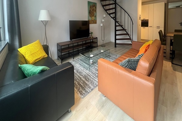 Niet geschikt voor woningdelers Indeling De gemeenschappelijke entree met bellentableau biedt toegang tot de appartementen, de liftinstallatie en het trappenhuis. De hal is voorzien van een interne berging met ingebouwde kast en biedt toegang naar de eerste slaapkamer. Een separaat toilet en fonteintje. Trap naar beneden. Woonkamer met aangrenzend balkon. Eetkamer met half open keuken. De keuken is voorzien van een inductiekookplaat met afzuiging, koelkast met vriesvak en een vaatwasser. Badkamer voorzien van een bad-douche combinatie en een tweepersoonswastafel. In de badkamer bevindt zich ook de wasmachine. Studeer-/werkkamer aan de achterzijde van de woning. De woning is niet geschikt voor woningdelers