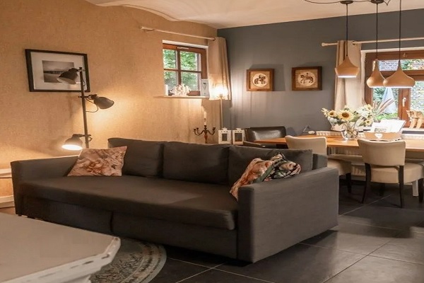 De woning beschikt over een eigen terrasje aan de voorzijde, perfect om in alle rust te genieten van of een goed boek. Bij binnenkomst valt direct het karakteristieke gewelfde plafond op, een prachtig overblijfsel van de voormalige stal dat de woning een uniek en authentiek karakter geeft. De knusse woonkamer vormt een gezellige plek om te ontspannen na een dag in de stad of in de natuur. De volledig uitgeruste keuken beschikt over een koelkast met vriesvak, magnetron en elektrische kookplaat – alles wat je nodig hebt voor een comfortabel verblijf. Op de eerste verdieping bevinden zich twee ruime slaapkamers en een badkamer met toilet, wastafel en douche.