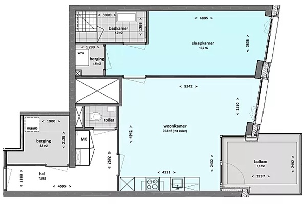 Leefkeuken voor wie graag kookt De keuken is volledig uitgerust en ideaal als je graag in de pan roert. Je beschikt over een inductiekookplaat met afzuigkap, combimagnetron, vaatwasser en koel-vriescombinatie. Voor een snelle maaltijd of een etentje met vrienden heb je hier alles bij de hand. De badkamer is modern afgewerkt en voorzien van een ruime douche en wastafel. Het toilet is apart geplaatst, wat prettig is in het dagelijks gebruik en bij bezoek. Het appartement maakt gebruik van een verplicht afnamecontract via Eteck voor verwarming, koeling en warm water. Dat is praktisch en draagt tegelijk bij aan een energiezuinige woning.