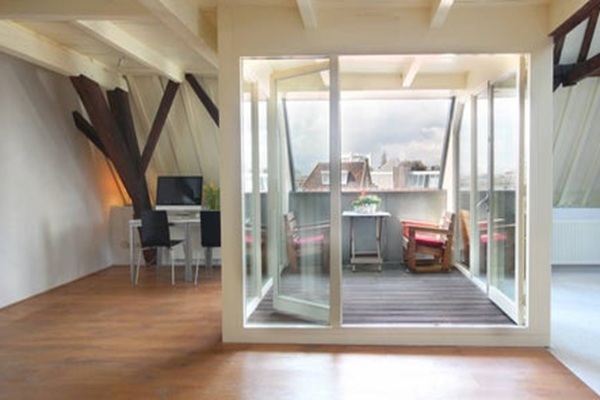Daarnaast biedt de ruime living voldoende ruimte voor een riante werkplek! Direct bij binnenkomst treft u de open keuken met kookeiland. De keuken is van alle gemakken voorzien zoals; vaatwasser, combimagnetron, koel-/vriescombinatie, 4-pits gasfornuis met afzuigkap. Hierna volgt de zeer ruime living met openhaard en prachtig inpandig balkon, welke te bereiken is via twee openslaande deuren. Via de keuken is middels een vaste trap de ruime slaapkamer te bereiken, welke een open verbinding heeft met de woonkamer. (Vide) Daarnaast bevindt zich ook de badkamer met douche en ligbad en separaat toilet op dit level. Vanuit vrijwel alle hoeken in de woning is de prachtige en historische dakconstructie te zien, wat een uitmuntende sfeer geeft aan het appartement.