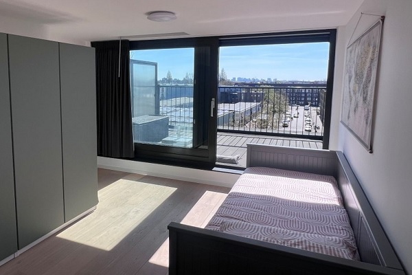 Indeling: Gemeenschappelijke entree met brievenbussen en toegang tot de garage, lift of trap naar de 4e verdieping. Entree appartement, ruime eetkamer vlakbij het raam met uitzicht op de gemeenschappelijke binnentuin. Lichte, ruime en smaakvol ingerichte woonkamer met prachtig uitzicht over de stad. Open, volledig ingerichte keuken met een modern betonnen aanrechtblad. Tussen de keuken en de woonkamer is er toegang tot het gastentoilet met wastafel. Via de trap is de bovenste verdieping te bereiken. Ruime overloop met deuren naar beide ruime slaapkamers, de badkamer en de waskast met opbergplanken. De hoofdslaapkamer is tuingericht en beschikt over een grote kledingkast en een geïntegreerde hor. De logeerkamer biedt nog een kledingkast, een logeerbed, ruimte voor een kantoorruimte en vanuit deze ruimte is het zonnige dakterras van ca. 8 m² op het zuiden te bereiken. De volledig betegelde luxe badkamer is voorzien van een inloopregendouche, wastafel met onderkast, medicijnkastje, designradiator en 2e toilet.