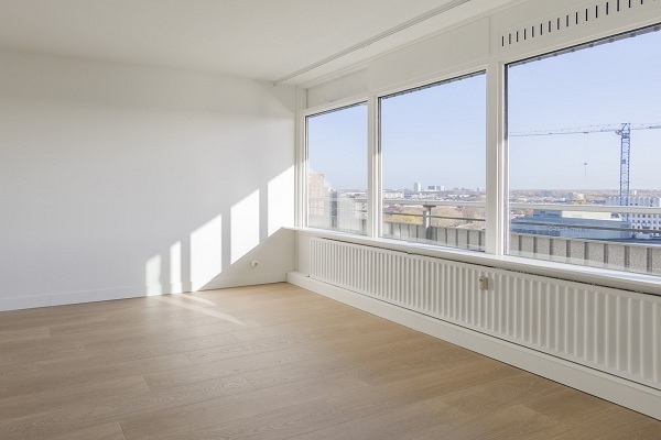 Indeling Begane grond: gemeenschappelijke entree, intercominstallatie, lift, ruime berging. 13e verdieping: ruime hal met meterkast, toilet met fonteintje, grote bergkast met boiler t.b.v. het warme water in de badkamer en keuken. Geheel betegelde badkamer voorzien van inloopdouche, wastafel en wasmachine- droger aansluiting. Toegang naar de lichte, ruime woonkamer met open keuken. De toegang naar het balkon is vanaf de woonkamer. De nieuwe, luxe keuken is voorzien van diverse inbouwapparatuur zoals inductiekookplaat, koelvriescombinatie, afzuigkap, combi-oven en afwasmachine. Het aanrecht is gemaakt van composiet. Verder zijn er twee ruime slaapkamers waarvan één voorzien is van een ruime inloopkast. Uitstekend geschikt voor studenten of werkende expats
