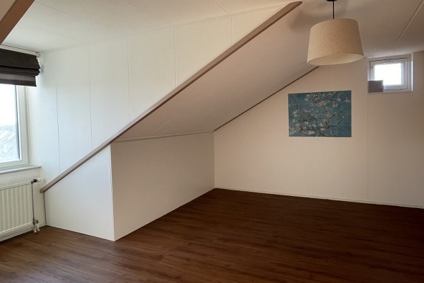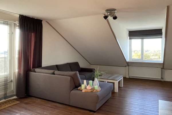 Het appartement ligt op de 4e verdieping. Vanuit de hal kom je in de ruime slaapkamer, de badkamer en de lichte woonkamer met half open keuken. Vanuit de woonkamer heb je ook toegang tot het balkon. De badkamer is voorzien van een douche, wastafel, toilet en een aansluiting voor de wasmachine. In de hal is een handige bergkast van bijna 2 m². Het complex heeft een lift en een gezamenlijke fietsenberging. Voor de deur kun je parkeren.