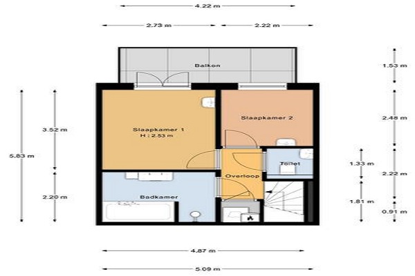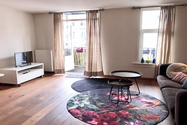 Indeling Entree via de tweede verdieping. De ruime en lichte woonkamer strekt zich uit over de gehele diepte van de woning en heeft grote raampartijen en een sfeervolle houten vloer die voor een warme uitstraling zorgt. Vanuit de woonkamer is er directe toegang tot het balkon, waar je heerlijk kunt genieten van de zon. Aan de achterzijde bevindt zich de moderne woonkeuken, voorzien van diverse inbouwapparatuur zoals een oven, kookplaat, afzuigkap en vaatwasser. Hier is ook voldoende ruimte voor een eettafel, ideaal voor gezellige diners. Via een vaste trap bereik je de bovenste verdieping. Hier bevinden zich de ruime hoofdslaapkamer met toegang tot een tweede balkon en een tweede (gast)kamer die ook uitstekend gebruikt kan worden als werkkamer of inloopkast. De moderne badkamer is uitgerust met een ligbad, aparte douche, dubbele wastafel en designradiator. Een aparte toilet bevindt zich een deur ernaast. Door de hele woning ligt een fraaie houten vloer en is er veel natuurlijk lichtinval, wat zorgt voor een ruimtelijk en comfortabel gevoel.