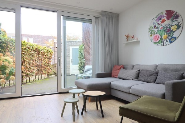 Indeling. Binnenkomst in hal welke toegang biedt tot het separaat toilet en de woonkamer met open keuken. Vanuit de woonkamer bereik je via de schuifpui de tuin. Vanuit de tuin is de gezamenlijke binnentuin te bereiken. In de woonkamer is de trap naar de eerste verdieping gelegen. Hal welke toegang biedt tot twee slaapkamers waarvan de grote slaapkamer gelegen is aan de voorzijde en de slaapkamer aan de achterzijde is ingedeeld als werkkamer. De badkamer is aan de voorzijde gelegen en beschikt over een douche, toilet en wastafel. Hier bevindt zich nog een ruime slaapkamer en een wasruimte.