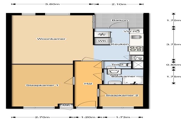 Dit appartement, gelegen op de tweede verdieping, heeft een woonkamer met halfopen keuken, badkamer met toilet, een slaapkamer en werkkamer en een apart toilet. Het woonoppervlak bedraagt circa 60 m². •Woonkamer met half open keuken •Een slaapkamer en een werk/studeerkamer •Balkon met zicht op Sint Sebastiaanstraat •Servicekosten: € 50,- per maand