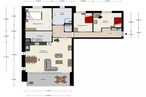 Via de centrale hal stap je binnen. Vanuit hier bereik je alle ruimtes. De woonkamer ligt aan de zuidkant en valt meteen op door het vele daglicht dankzij de grote ramen. De ruimte is praktisch in te delen. De keuken staat in open verbinding met de woonkamer. Hij is modern, netjes afgewerkt en geplaatst in hoekopstelling. Je hebt de beschikking over een 4-pits gaskookplaat, afzuigkap, vaatwasser, combimagnetron en een koel-vriescombinatie. De grootste slaapkamer ligt aan de achterzijde en biedt direct toegang tot de badkamer, wat zorgt voor extra comfort. Ook deze kamer ligt aan de achterzijde en is ruim genoeg voor een volwaardige slaapkamer. Ideaal als werk- of hobbykamer. Deze kamer kijkt uit op het groen achter het gebouw. De badkamer ligt naast de masterbedroom en is ruim opgezet. Je vindt er een inloopdouche met glazen wand en een vaste wastafel. Het raam zorgt voor daglicht en frisse lucht. Het toilet is apart van de badkamer geplaatst. In de inpandige berging vind je de aansluiting voor de wasapparatuur. Er blijft genoeg ruimte over voor opslag. Het balkon is bereikbaar via de woonkamer en kijkt uit over het plein. Vanaf de hogere verdiepingen kijk je mooi weg over het groen. Doordat het balkon op het zuiden ligt, kun je hier volop van de zon genieten. Het complex heeft een lift. Bij het appartement hoort een parkeerplek in de garage en een berging in de kelder.