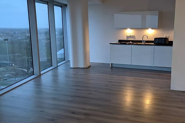 Bij binnenkomst betreed je de hal, die toegang geeft tot de masterbedroom, de moderne badkamer, het separate toilet, de berging en de woonkamer. De ruime woonkamer is praktisch in te richten en via de schuifpui stap je direct het royale balkon op, ideaal om te ontspannen of te genieten van het uitzicht. De luxe open keuken is volledig uitgerust met inbouwapparatuur zoals een keramische kookplaat met afzuiging, vaatwasser, koel-/vriescombinatie en combi-magnetron, en biedt volop kastruimte. De badkamer is voorzien van een ligbad, inloopdouche met glazen wand en een vaste wastafel. Voor extra gemak is er een aparte wasruimte. Het appartement wordt verwarmd door een energiezuinige WKO-installatie en beschikt over een eigen parkeerplaats in de parkeergarage en een berging in de kelder. Het complex is voorzien van een lift en combineert comfort, licht en luxe op een toplocatie.