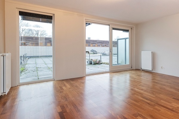 Via de eigen voordeur bereik je het entree op de begane grond. De hal geeft toegang tot een grote slaapkamer, het separate nieuwe toilet en de nieuwe badkamer. Via de trap kom je in de tweede hal die toegang geeft tot twee grote slaapkamers, de woonkamer met open keuken, het tweede toilet en de ruime inpandige berging met wasmachine. De ruime woonkamer heeft een volledige uitgeruste nieuwe open keuken. De woonkamer is ruim en licht en geeft toegang tot het enorme dakterras. De drie slaapkamers zijn allemaal heel ruim van opzet. De luxe badkamer heeft een wastafel met meubel, tweede toilet en een regendouche. Op de eerste etage bevindt zich een ruime berging. Het appartement is zeer geschikt voor een gezin, een stel en mag gedeeld worden door maximaal twee delers.
