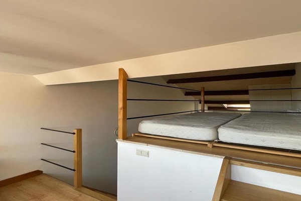 Indeling: Begane grond: Bij de woning hoort een stukje privé tuin. Verder is op het terrein een gezamenlijke binnenplaats met fietsenstalling en parkeerplekken voor auto's. Eerste verdieping: Via een wenteltrap komt u bij de entree van het appartement. De woning is voorzien van een woonkamer met open keuken, een badkamer en een slaapkamer. De keuken is uitgerust met een 4-pits gasfornuis, een oven, een afzuigpak en een koelkast met vriesvak. De badkamer is voorzien van een volledig afgesloten douche, een wastafel, en een toilet.