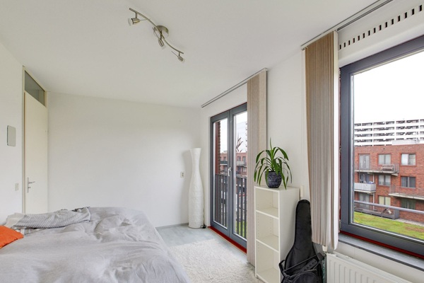 GEEN WONINGDELERS TOEGESTAAN, GEEN STUDENTEN INDELING: Nette gemeenschappelijke entree met video-intercom installatie en postbussen. Middels het gemeenschappelijke trappenhuis of de lift bereikt u de woning, welke is gelegen op de derde verdieping. Vanuit de centraal gesitueerde hal zijn alle vertrekken in het appartement bereikbaar. De ruime en lichte woonkamer biedt toegang tot de zonnige loggia en biedt u een fraai uitzicht over de nabij gelegen groenstrook en de winkels aan de Bijlmerdreef. De woonkamer grenst aan de moderne keuken gelegen aan de achterzijde. Naast de keuken is een inpandige berging voor de wasmachine- en de drogeropstelling. Er is hier ook nog genoeg ruimte voor een grote stellingkast en een vriezer. Voorts treft u aan de voorzijde van het appartement een viertal goed bemeten slaapkamers. De slaapkamers hebben voldoende ruimte voor een flinke kledingkast en een tweepersoons bed. De badkamer is voorzien van een inloopdouche, wastafel en radiator. Separaat treft u het toilet met fonteintje.