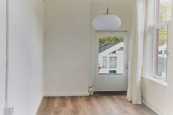 Indeling: Gezamenlijke entree met trapopgang naar 1e verdieping. Eerste verdieping; Gedeelde overloop met entree appartement. Lichte woonkamer (ca. 20m2) aan de voorzijde gelegen met Frans balkon en een schouw evenals een ornamenten plafond. Half open keuken (ca. 12 m2) voorzien van Inductie kookplaat, afzuigkap, koelkast met vriesvak en combi oven. Aan de achterzijde 2 slaapkamers. Eerste slaapkamer (ca. 13.5 m2). Middels de 1e slaapkamer bereik je de 2e slaapkamer (ca. 7 m2) met kast voorzien van wasmachine aansluiting. Deze kamer geeft tevens toegang tot het dakterras (ca. 9m2) gelegen op het noordoosten. Badkamer met douche, wastafel en toilet. Geschikt voor een werkende alleenstaande of een stel (niet geschikt voor woningdelers).