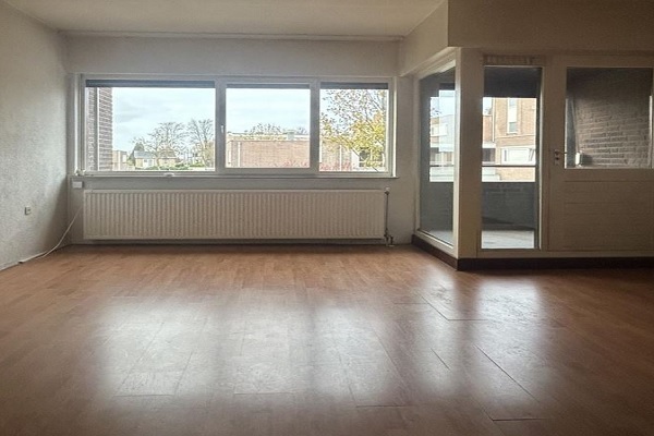 Beschikbaar voor één huishouden. Indeling: Centrale entree met brievenbussen en intercominstallatie. Via de ruime hal is toegang tot alle vertrekken. De lichte woonkamer met open keuken bevindt zich aan de voorzijde van de woning en geeft toegang tot het balkon. De keuken is uitgerust met onder andere een 4-pits gasfornuis en een koelkast met vriesvak. De woning beschikt over een badkamer en een apart toilet. Tussen deze ruimtes bevindt zich een wasruimte met aansluitingen voor zowel wasmachine als droger. Aan de achterzijde liggen twee slaapkamers. Daarnaast beschikt de woning over een persoonlijke berging en een privé garage met ruimte voor één auto