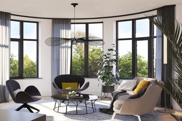 U komt binnen via een statige entree die is afgewerkt met fraai natuurstenen vloer die doorloopt in de lichte gangen naar de appartementen. De natuurstenen afwerking vindt u ook terug in de kaders rond de voordeuren. Uiteraard zijn alle appartementen met de lift te bereiken. Wonen in de sfeer van de jaren ’30 met het comfort van nu. Om modern comfort met respect voor de oorspronkelijke sfeer te waarborgen is in de afwerking van de appartementen veel aandacht besteed aan details. Zo zijn bijvoorbeeld de eikenhouten vloeren in een visgraatmotief gelegd en voorzien van vloerverwarming. De moderne, strak vormgegeven keuken is voorzien van hoogwaardige inbouwapparatuur en stenen werkbladen. In de bijzondere fraai afgewerkte badkamers bieden het vrijstaande ovale bad (een aantal woningen beschikt niet over een ligbad), en het royale badmeubel u het luxueuze gevoel van. De grotere appartementen beschikken bovendien over een badkamer en-suite in de masterbedroom. Het ontwerp met de grote glazen puien van vloer tot plafond schept een gevoel van ruimte en geeft prachtig uitzicht.