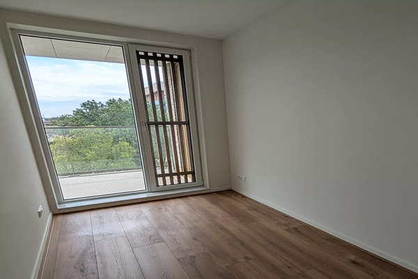 Bij binnenkomst kom je in een ruime hal die toegang biedt tot de woonkamer en keuken. De woonkamer is licht en knus, en geeft toegang tot het terras — een fijne plek om te ontspannen. De keuken is praktisch opgezet en biedt ruimte voor een eethoek. De woning beschikt over twee comfortabele slaapkamers, geschikt voor een slaapkamer en een werk- of logeerkamer. De badkamer is netjes afgewerkt en voorzien van alle basisvoorzieningen.
